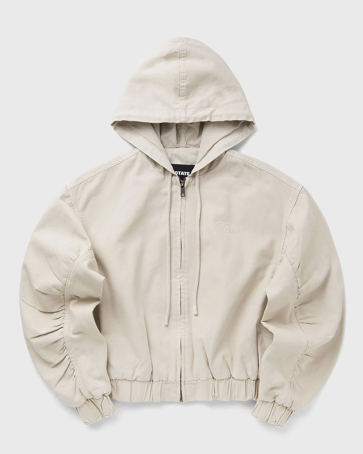 The Heavy Woven Jacket from ROTATE Birger Christensen combines functional details with a modern design. It features a short cut, a front zipper and elasticated cuffs and hem for a perfect fit. The voluminous, gathered sleeves give the jacket a striking silhouette, while the adjustable hood offers additional comfort. A subtle, tonal R monogram on the chest adds a subtle brand accent. - Cropped fit - Front zipper - Elasticated cuffs and hem - Adjustable hood - Tonal, embroidered logo monogram Article Number: 1142831763 Gender: Women Color: OATMEAL Material: 100% Cotton