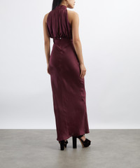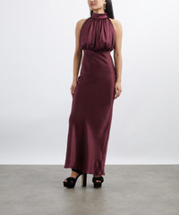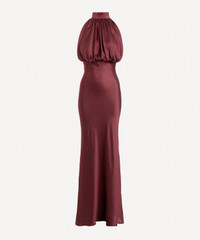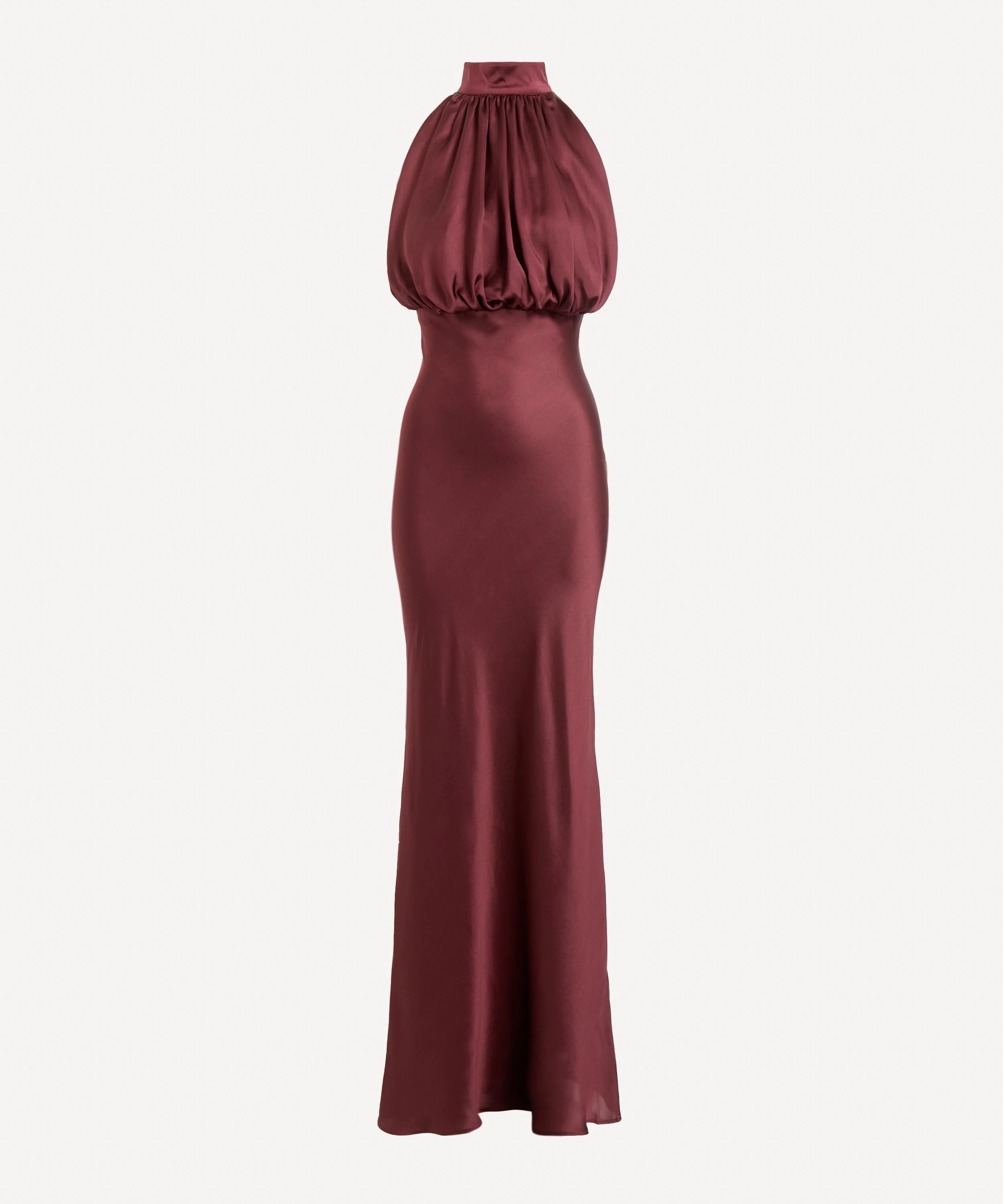 DETAILS Maxi dress Pure silk Slim fit High neckline Voluminous blouson top Sleeveless design Zip closure at the back Lined SIZE & FIT Model is 176cm/5'9.5"; Chest: 81cm; Waist: 62.5cm; Hip: 89cm and wears a size 8 COMPOSITION & CARE 100% Silk Lining: 95% Polyester; 5% Elastane Dry clean