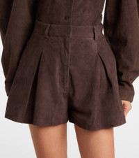 Fill the gaps in your going-out wardrobe with unique and glamorous styles from Rotate. Expertly crafted from smooth suede, these shorts are shaped into a classic, high-rise silhouette. Product Details - Material: 100% goat leather (suede) - Care instructions: specialist clean - Made in India - Designer color name: Chocolate Brown - Item color: brown - Lining: 100% polyester (recycled) - Contains non-textile parts of animal origin - Belt loops - Pockets: side slit pockets - Closure: zipper, hook fastening - Item number: P01113302 Size & Fit - Fits small to size - we recommend trying one size larger - Non-stretchy fabric - Wide-leg - High-waisted - The model seen in the picture is 178cm-5'10" and wearing a size DE 36