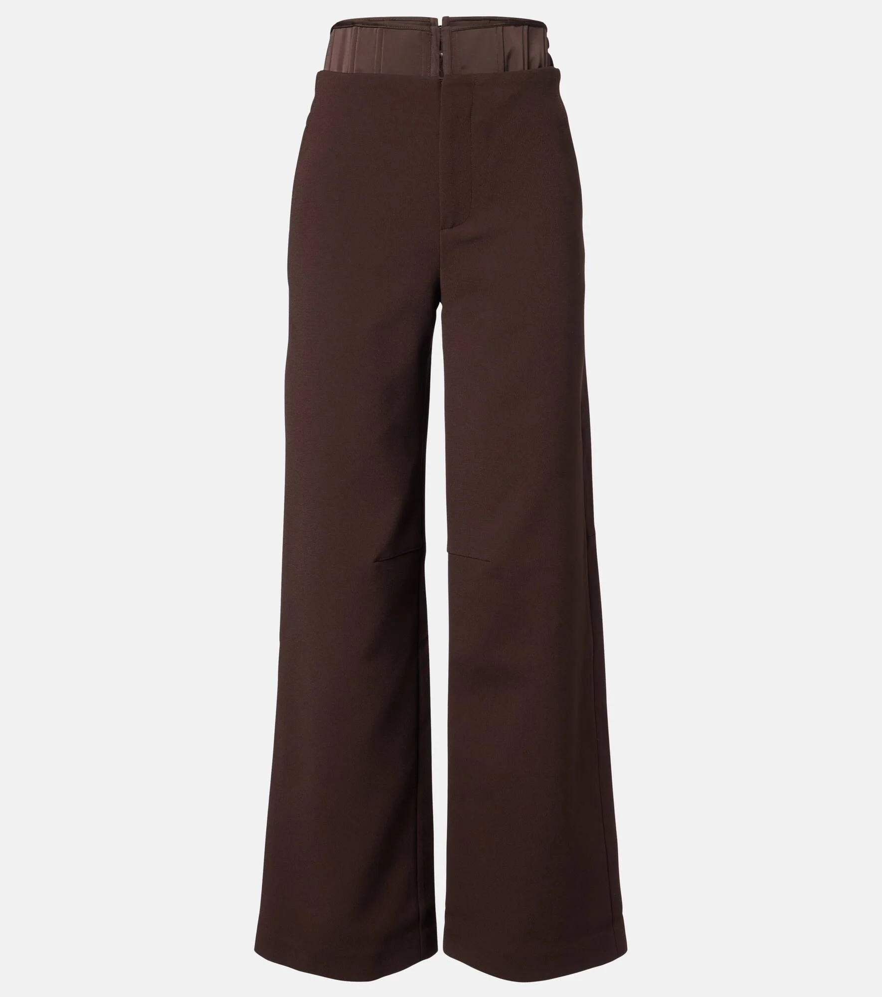 These pants from Rotate are defined by a flattering wide-leg cut. The high-rise silhouette is complemented by corset detailing around the waist and secured with tie straps on the back. Product Details - Material: 100% polyester (recycled) - Care instructions: dry clean - Made in China - Designer color name: Chicory Coffee - Item color: brown - Lining: 52% polyester, 48% viscose - Closure: zipper fly, button and hook fastenings, self-ties - Pockets: side slit pockets, back pockets - Detachable trim - Item number: P01113767 Size & Fit - True to size - Non-stretchy fabric - Wide-leg - High-waisted - The model seen in the picture is 178cm-5'10" and wearing a size DE 34