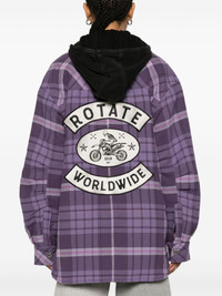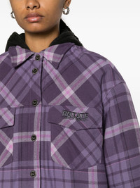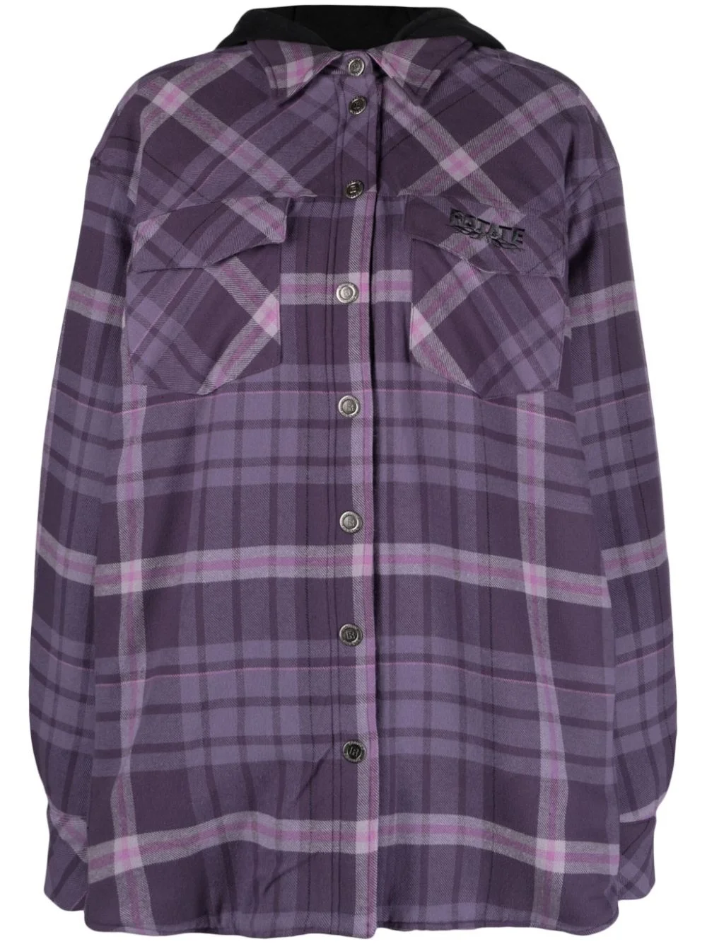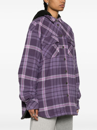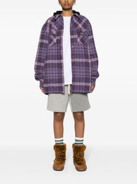 hooded flannel shirt jacket Highlights - Grape purple - Organic cotton - Flannel - Plaid check pattern - Detachable hood - Embroidered logo at the chest - Logo patch to the rear - Classic collar - Front press-stud fastening - Logo-embossed buttons - Drop shoulder - Long sleeves - Press-stud fastening cuffs - Faux-shearling lining - Two chest patch pockets - Two side slit pockets Imported Composition Lining: Polyester 100% Outer: Organic Cotton 100% SIZE & FIT Model measurements Height 5 ft 10 in(1.78 m) Bust/Chest 32.67 in(83 cm) Hips 35.43 in(90 cm) Waist 23.22 in(59 cm) FittingInformation Designed for an oversized fit, offering additional room throughout Made from a midweight non-stretch fabric This piece fits true to size – take your usual size Washing instructions Hand Wash