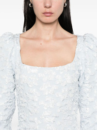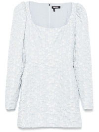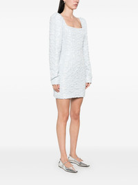 jacquard long-sleeve mini dress Highlights - Light blue - Concealed rear hook and zip fastening - U-neck - Pinched shoulders - Full lining Imported Composition Outer: Recycled Polyester 55%, Elastomultiester 40%, Polyester 5% Lining: Viscose 97%, Elastane 3% SIZE & FIT Model measurements Height 5 ft 9 in(1.76 m) Bust/Chest 32.28 in(82 cm) Hips 35.43 in(90 cm) Waist 25.19 in(64 cm) FittingInformation Designed for a close fit throughout Made from a midweight stretch fabric, this piece offers elasticity and flexibility when worn