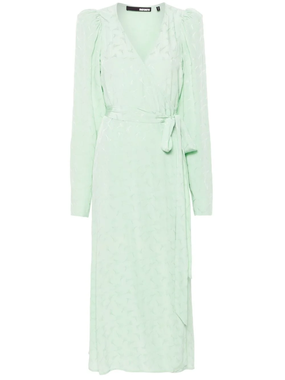 jacquard midi dress Highlights - Light green - Patterned jacquard - Wrap design - Plunging v-neck - Long puff sleeves - Straight hem - Mid-length - Self-tie fastening Imported Composition Viscose 100% SIZE & FIT Model measurements Height 5 ft 10 in(1.77 m) Bust/Chest 32.28 in(82 cm) Hips 35.03 in(89 cm) Waist 25.19 in(64 cm) FittingInformation Designed for a wraparound style that can be adjusted to your preference The adjustable tie waist gives a more adaptable and personalised fit Made from a midweight non-stretch fabric This piece fits true to size – take your usual size Washing instructions Hand Wash