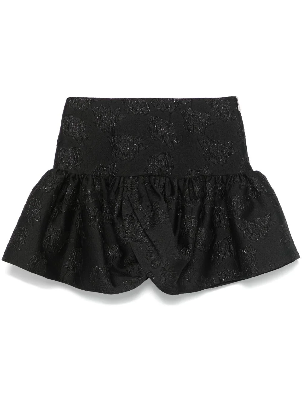 jacquard mini skirt Highlights - Black - Textured finish - Monogram jacquard - Concealed side hook and zip fastening - Floral motif - Full lining - Puffball hem Imported Composition Lining: Polyester 92%, Elastane 8% Outer: Recycled Polyester 54%, Polyester 35%, Polyamide 11% SIZE & FIT Model measurements Height 5 ft 10 in(1.78 m) Bust/Chest 31.49 in(80 cm) Hips 37 in(94 cm) Waist 23.62 in(60 cm) FittingInformation This mini-length skirt is intended to be worn just below the waist Made from a midweight fabric