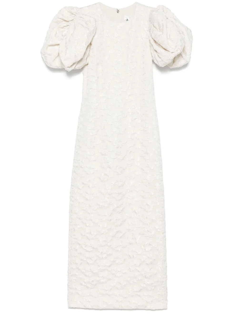 jacquard puff-sleeve midi dress Highlights - Light beige - Concealed rear hook and zip fastening - Elasticated cuffs - Rear slit - Full lining Imported Composition Outer: Recycled Polyester 55%, Elastomultiester 40%, Polyester 5% Lining: Viscose 97%, Elastane 3% SIZE & FIT Model measurements Height 5 ft 9 in(1.76 m) Bust/Chest 31.1 in(79 cm) Hips 36.61 in(93 cm) Waist 24.8 in(63 cm) Measurement SLEEVE LENGTH 3.93 in(10 cm) HIPS 32.28 in(82 cm) LENGTH 50.78 in(129 cm) WAIST 25.19 in(64 cm) FittingInformation Designed for a slim fit that sits just away from the body offering a close yet comfortable fit The vented hem offers movement at the rear Made from a midweight stretch fabric, this piece offers elasticity and flexibility when worn This piece fits small – take one size up