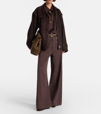 Fill the gaps in your going-out wardrobe with unique and glamorous styles from Rotate. Crafted from soft suede, the Kamala jacket is cut to an oversized silhouette with a high neck. Product Details - Material: 100% goat leather (suede) - Care instructions: specialist clean - Made in India - Color: brown - Designer color name: Chocolate Brown - Item color: brown - Lining: 54% polyester, 46% viscose - Pockets: welt pockets - Drawstring waist - Closure: two-way zipped front with snap-button fastenings - Item number: P01133431 Size & Fit - Fits large to size - we recommend trying one size smaller - Designed for a loose fit - Adjustable hem - Non-stretchy fabric - Falls below the hip - The model seen in the picture is 178cm-5'10" and wearing a size DE 32