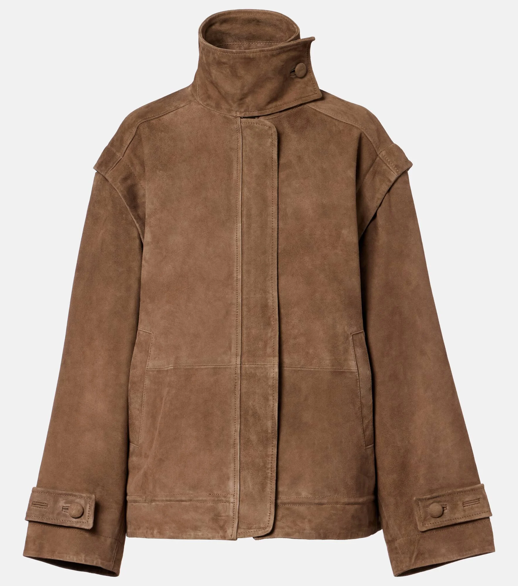 Invest in sophisticated outerwear to wear on repeat, like the Kamala jacket from Rotate. In a slightly oversized silhouette, the Kamala jacket is made from smooth suede with a zipped front and a drawstring hem. Product Details - Material: 100% goat leather (suede) - Care instructions: specialist clean - Made in India - Color: brown - Designer color name: Morel - Item color: brown - Lining: 54% polyester, 46% viscose - Hardware color: silver - Closure: two-way zipped front with snap-button fastenings - Pockets: welt pockets - Cuff: buttoned - Drawstring at the hem for adjustable fit - Item number: P01133456 Size & Fit - Fits large to size - we recommend trying one size smaller - Designed for a loose fit - Adjustable hem - Non-stretchy fabric - Falls below the hip - The model seen in the picture is 178cm-5'10" and wearing a size DE 32