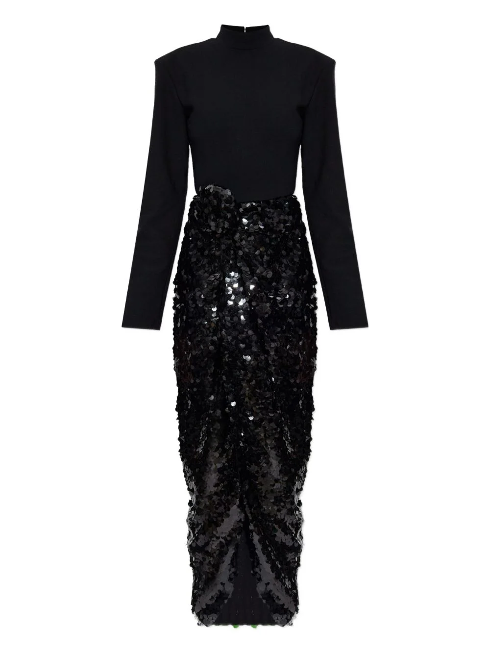 knot-detail sequin maxi dress Highlights - Black - Sequin embellishment - Knot detail - Long sleeves - High neck - Zip fastening Imported Composition Outer: Recycled Polyester 100% Lining: Polyester 92%, Elastane 8% Washing instructions Read Manufacturer Guidelines