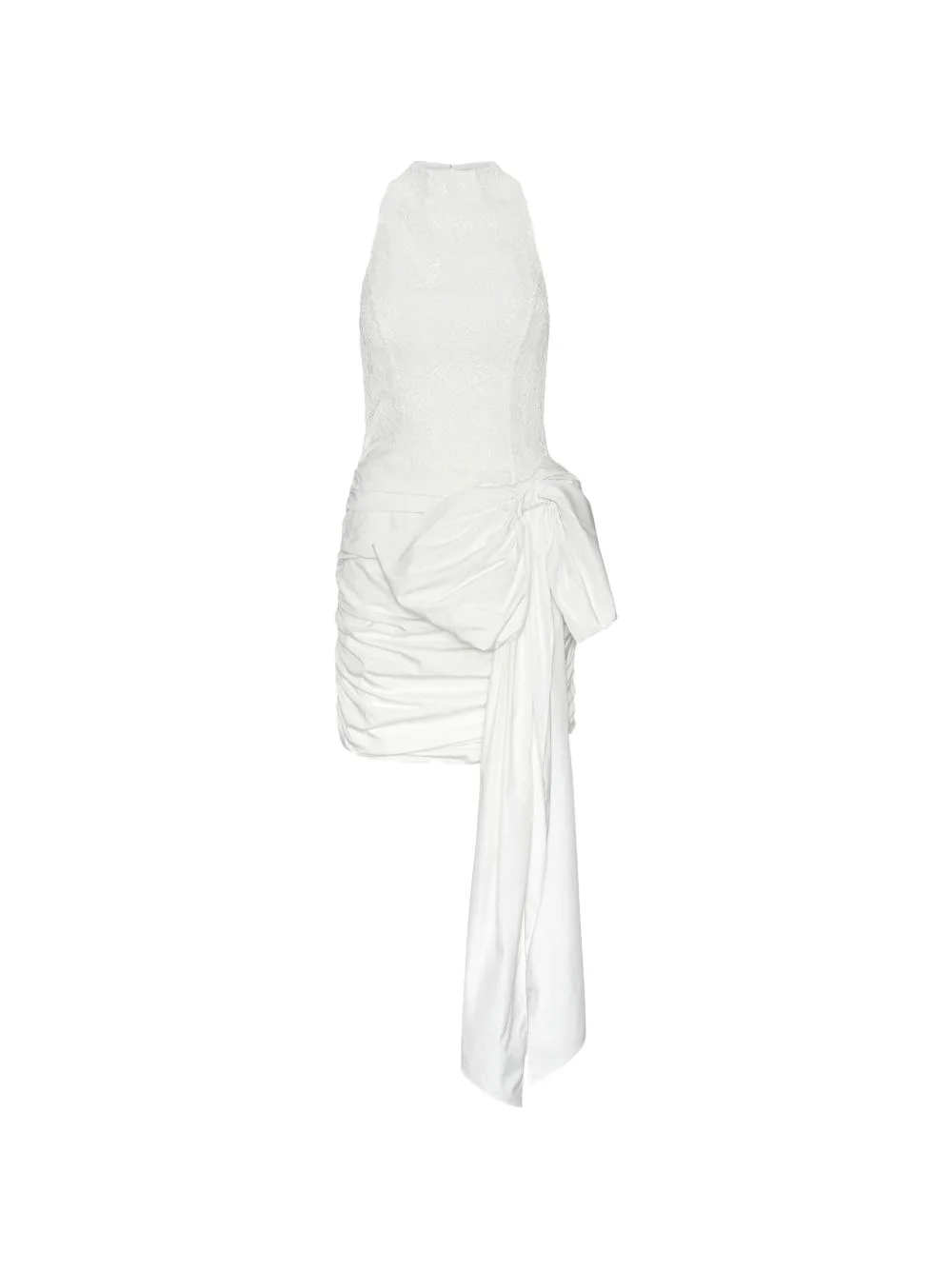lace bow mini dress Highlights - White - Lace detail - Gathered detail - Bow detail - Mini length - Sleeveless Imported Composition Outer: Recycled Polyester 100% Lining: Polyester 95%, Elastane 5% Washing instructions Read Manufacturer Guidelines