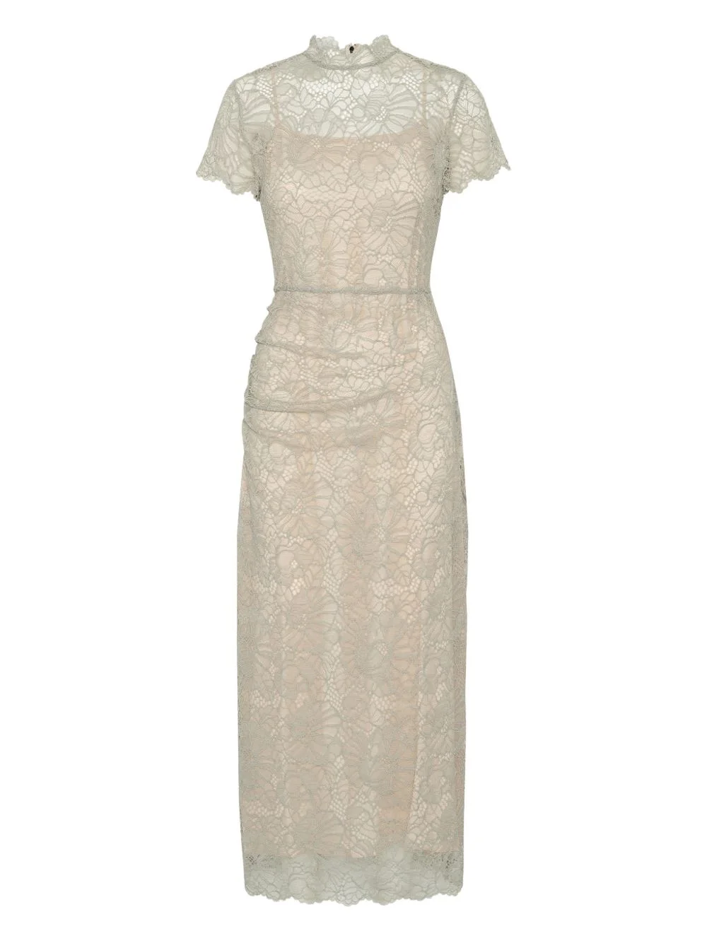 lace-detail midi dress Highlights - Beige - Lace detail - Short sleeves - High neck - Midi length - Zip fastening Imported Composition Outer: Recycled Polyester 100% Lining: Viscose 100% Washing instructions Hand Wash