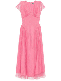 lace maxi dress Highlights - Rose pink - Concealed rear hook and zip fastening - Gathered detailing - V-neck - Flutter sleeves Imported Composition Lining: Polyester 100% Outer: Recycled Polyamide 100% SIZE & FIT Model measurements Height 5 ft 10 in(1.78 m) Bust/Chest 33.46 in(85 cm) Hips 36.22 in(92 cm) Waist 23.22 in(59 cm) FittingInformation Designed for a close fit at the chest and waist with a loose fit at the hip The detachable slip sits just away from the body, offering a close yet comfortable fit Made from a lightweight fabric