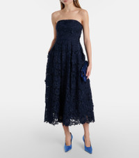 Fill the gaps in your going-out wardrobe with unique and glamorous styles from Rotate. This charming midi dress is crafted from floral lace and boasts a fitted bodice with a voluminous skirt. Product Details - Material: 100% polyester (recycled) - Care instructions: hand wash - Made in China - Color: blue - Designer color name: Navy Blazer - Lining: 95% polyester, 5% elastane - Closure: concealed zipped back - Item number: P01133443 Size & Fit - True to size - Cinched waist - Non-stretchy fabric - The model seen in the picture is 178cm-5'10" and wearing a size DE 34