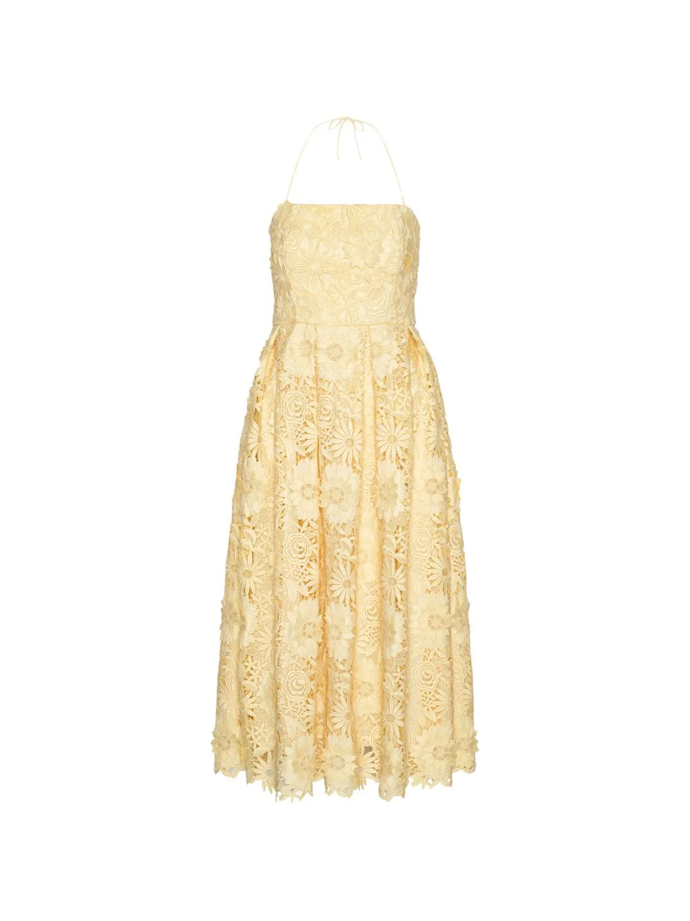 lace midi dress Highlights - Yellow - Floral lace - Square neck - Flared skirt Imported Composition Outer: Recycled Polyester 100% Lining: Polyester 95%, Elastane 5% Washing instructions Hand Wash