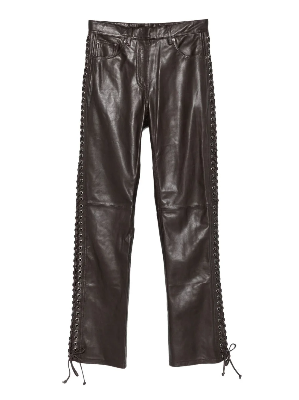 eyelet-detail trousers Highlights - Brown - Eyelet detail - Lace-up fastening - Five pockets - Belt loops Imported Composition Outer: Lambskin 100% Lining: Polyester 100% SIZE & FIT Model measurements Height 5 ft 10 in(1.78 m) Bust/Chest 33.46 in(85 cm) Hips 36.22 in(92 cm) Waist 23.22 in(59 cm) Washing instructions Do Not Wash/Do Not Dry Clean