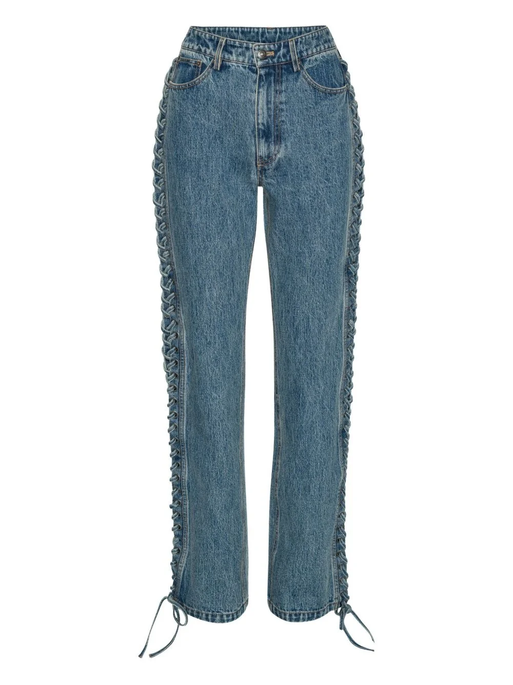 laced straight leg jeans Highlights - Blue - Organic cotton - Lace-up detailing - Straight leg Imported Composition Organic Cotton 100% Washing instructions Machine Wash