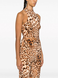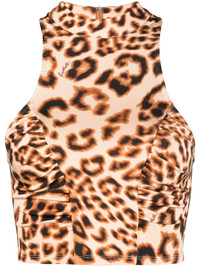 leopard-pattern crop top Highlights - Caramel brown/black - Leopard print - All-over logo print - Gathered detailing - Rear zip fastening - Mock neck - Sleeveless - Cropped Imported Composition FSC Viscose 93%, Spandex/Elastane 7% SIZE & FIT Model measurements Height 5 ft 10 in(1.77 m) Bust/Chest 31.88 in(81 cm) Hips 36.22 in(92 cm) Waist 24.01 in(61 cm) FittingInformation Designed for a close fit throughout Made from a midweight stretch fabric, this piece offers elasticity and flexibility when worn This piece fits true to size – take your usual size Washing instructions Machine Wash
