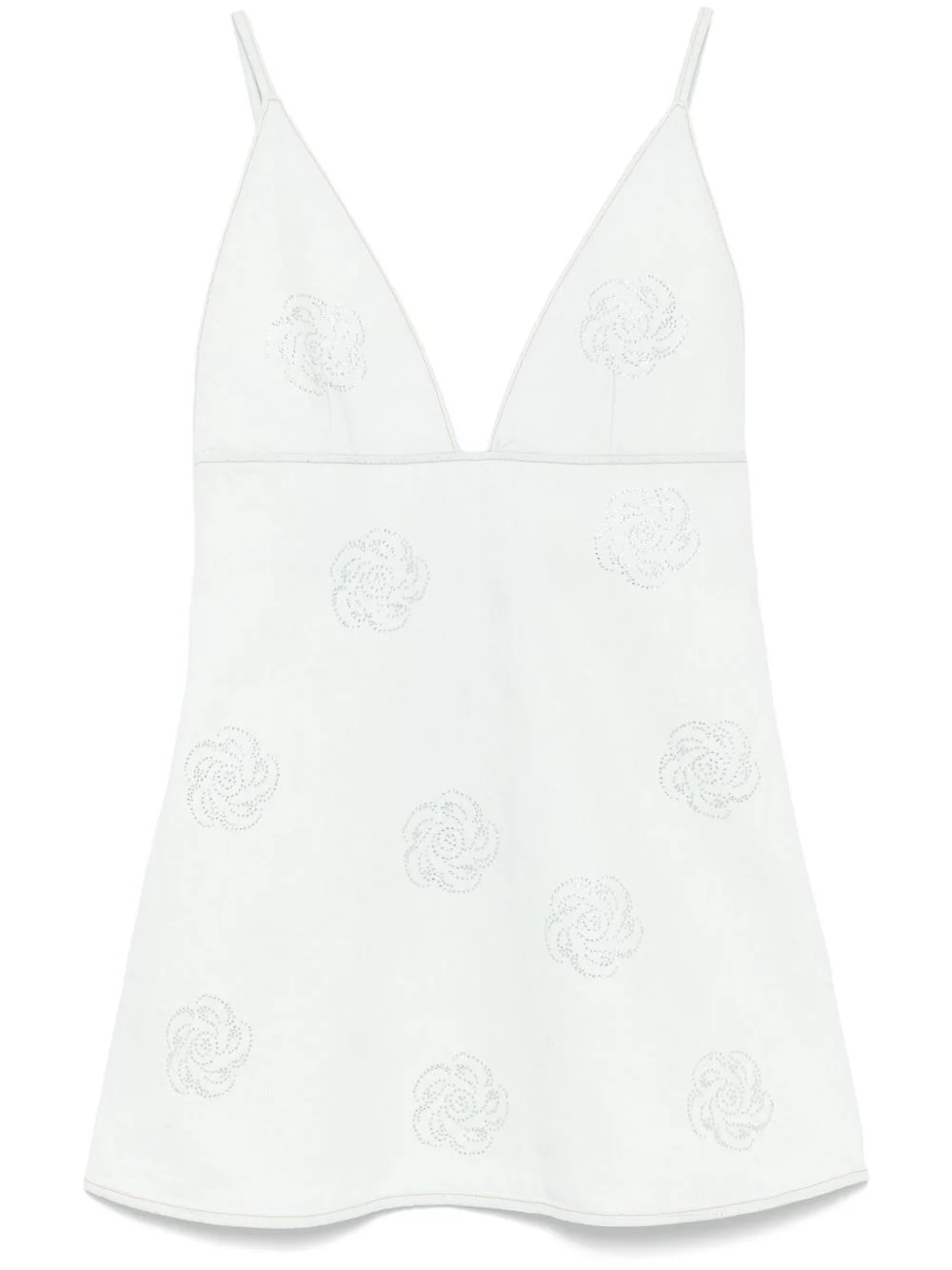 Lorina denim dress Highlights - Light blue - Rear zip fastening - Two side slash pockets - Crystal embellishment - Plunging v-neck Imported Composition Cotton 100% SIZE & FIT Model measurements Height 5 ft 9 in(1.76 m) Bust/Chest 32.28 in(82 cm) Hips 35.43 in(90 cm) Waist 25.19 in(64 cm) FittingInformation Designed for a close fit at the chest with a loose fit over the waist and hips Sturdy and hard-wearing, this denim piece offers no stretch