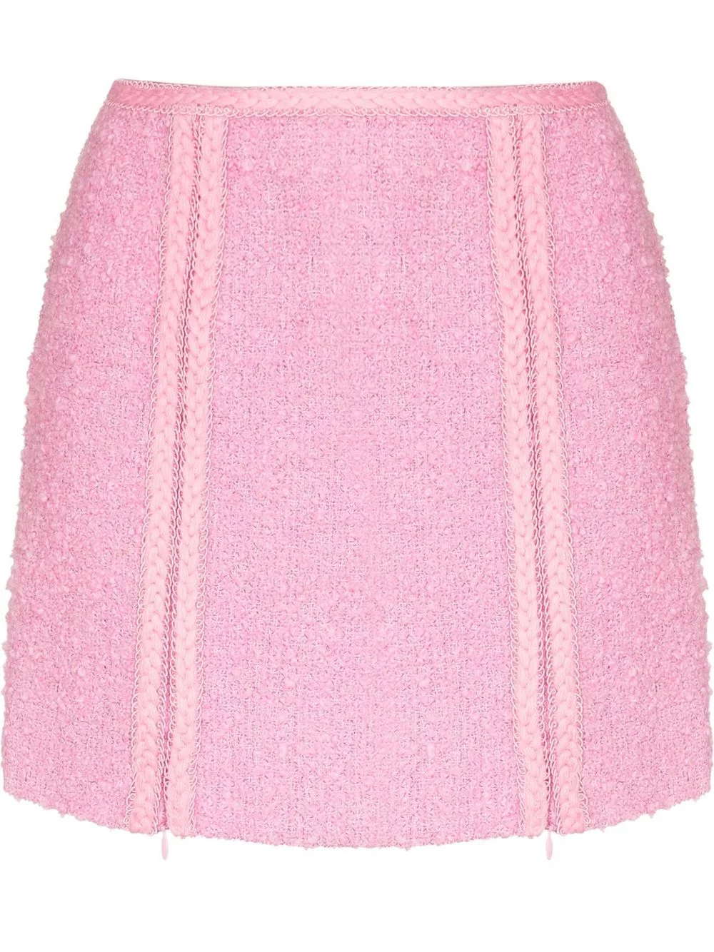 Lina boucle mini skirt Highlights - Cotton candy pink - Recycled polyester blend - Boucle construction - Mid-rise - Fitted waistline Imported Composition Recycled Polyester 62%, Wool 30%, Acrylic 7%, Nylon 1% SIZE & FIT Model measurements Height 5 ft 11 in(1.8 m) Bust/Chest 33.85 in(86 cm) Hips 37 in(94 cm) Waist 25.59 in(65 cm) FittingInformation This piece fits true to size. We recommend you get your regular size Cut for a slim fit Made with a mid-weight stretch fabric Washing instructions Dry Clean Only