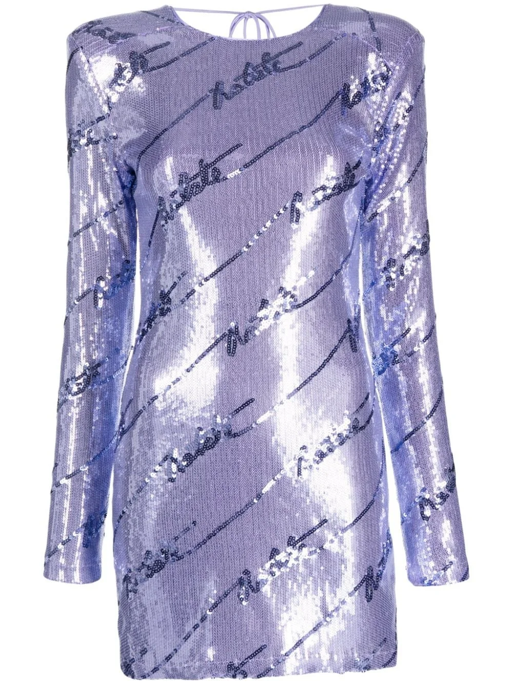 logo-embellished sequin minidress Highlights - Lavender purple/dark purple - Recycled polyester blend - Stretch-design - Sequin embellishment - Sequin logo detail - Round neck - Concealed rear zip fastening - Rear tie fastening - Shoulder pads - Long sleeves - Fitted-cuff sleeves - V-back - Straight hem - Above-knee length Imported Composition Outer: Recycled Polyester 95%, Elastane 5% Lining: Recycled Polyester 100% SIZE & FIT Model measurements Height 5 ft 9 in(1.75 m) Bust/Chest 31.88 in(81 cm) Hips 34.64 in(88 cm) Waist 24.4 in(62 cm) Measurement SLEEVE LENGTH 19.68 in(50 cm) HIPS 29.92 in(76 cm) LENGTH 30.7 in(78 cm) WAIST 24.4 in(62 cm) BUST 28.34 in(72 cm) FittingInformation Designed for a slim fit that sits just away from the body offering a close yet comfortable fit Made from a midweight stretch fabric, this piece offers elasticity and flexibility when worn This piece fits true to size – take your usual size Washing instructions Dry Clean Only