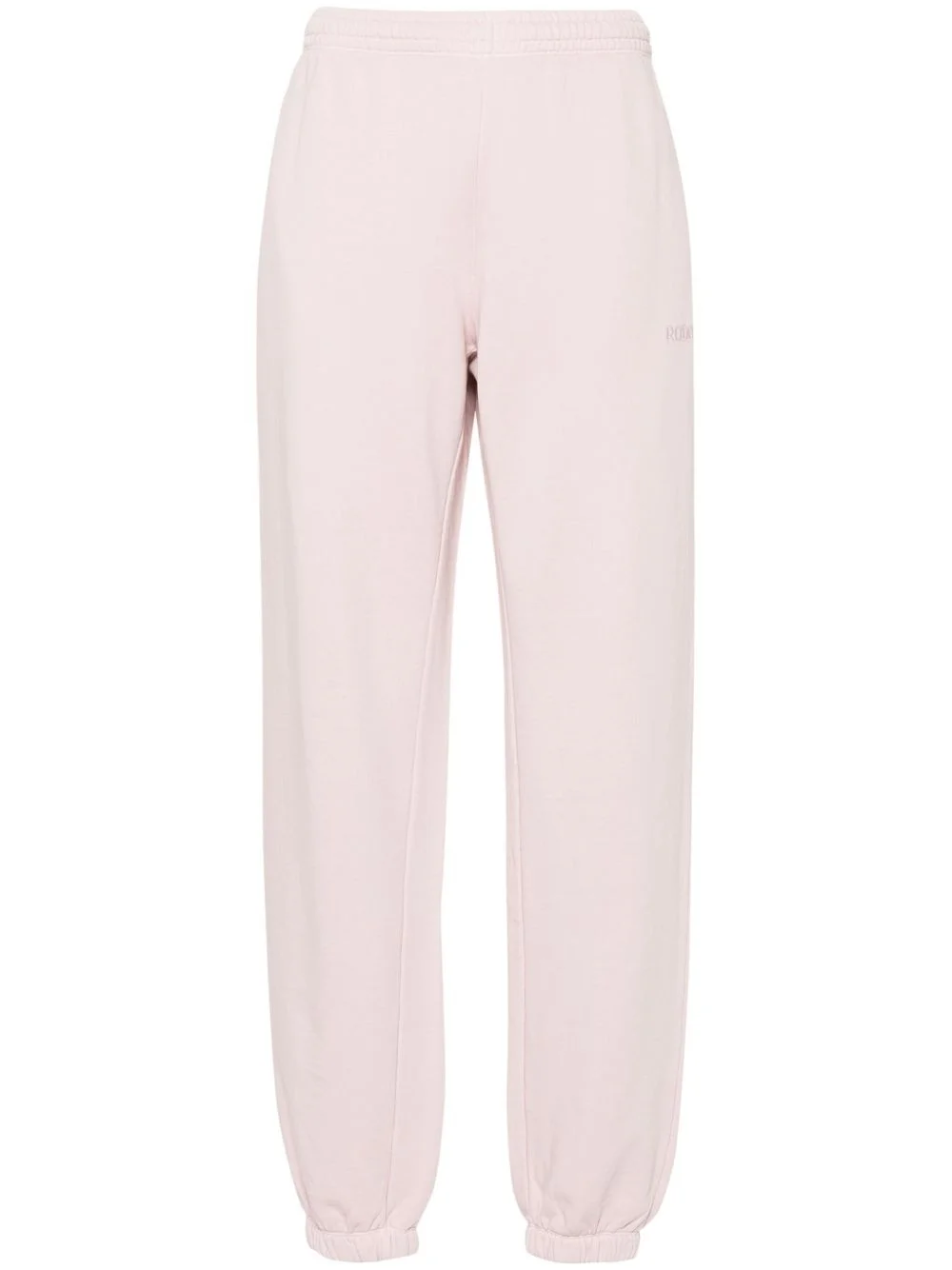 logo-embroidered track pants Highlights - Rose pink - Organic cotton - Jersey texture - Elasticated waistband - Embroidered logo to the front - Two side inset pockets - Tapered leg - Elasticated ankles - French terry lining - Internal drawstring fastening waist Imported Composition Organic Cotton 100% SIZE & FIT Model measurements Height 5 ft 10 in(1.77 m) Bust/Chest 33.07 in(84 cm) Hips 37 in(94 cm) Waist 24.8 in(63 cm) FittingInformation Designed for a relaxed tapered cut, these trousers allow for a close fit at the waist and offer a loose fit at the thighs, with a closer fit toward the ankles Adjust this piece’s waistband to your preference using the drawstring Made from a midweight non-stretch fabric, this piece offers minimal elasticity when worn This piece fits true to size – take your usual size Washing instructions Machine Wash