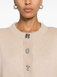 logo-lettering cardigan Highlights - Sand beige - Organic cotton blend - Silver-tone logo lettering - Ribbed trim - Crew neck - Shoulder pads - Long sleeves - Straight hem - Front press-stud fastening Made in Italy Composition Organic Cotton 95%, Cashmere 5% SIZE & FIT Model measurements Height 5 ft 10 in(1.78 m) Bust/Chest 33.07 in(84 cm) Hips 36.61 in(93 cm) Waist 24.8 in(63 cm) FittingInformation Designed for a relaxed fit, this piece allows for comfort and movement when worn The internal shoulder pads offer a structured shape Made with a midweight knit, this piece offers some stretch This piece fits true to size – take your usual size