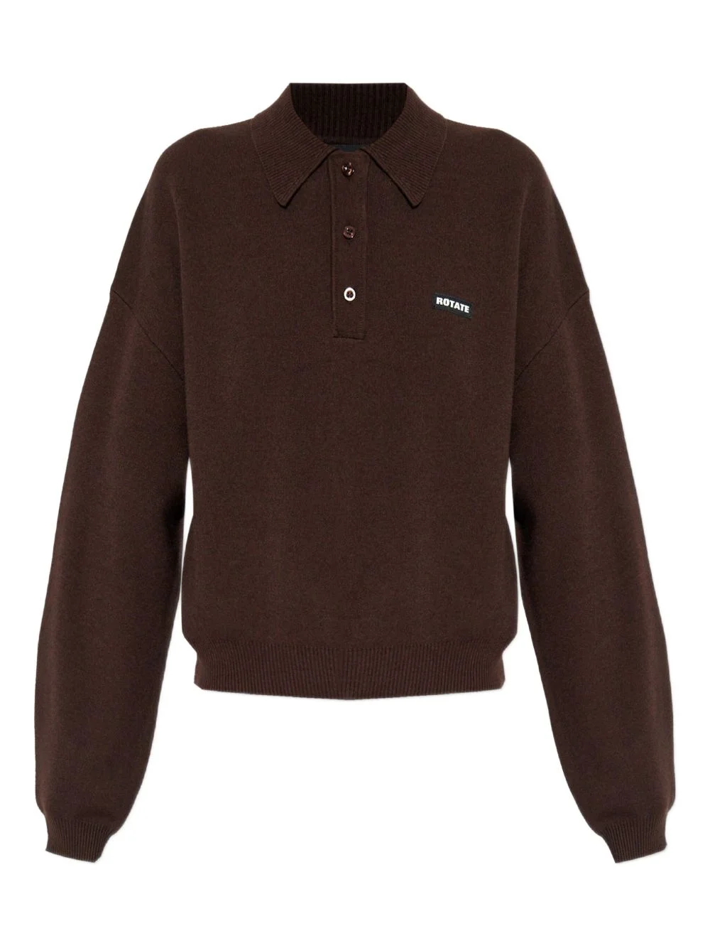logo-patch polo top Highlights - Brown - Button fastening - Polo collar - Long sleeves - Logo detail - Ribbed hem Imported Composition Modal 48%, Merino 32%, Polyamide 20% Washing instructions Read Manufacturer Guidelines