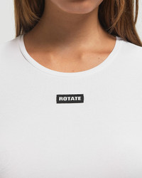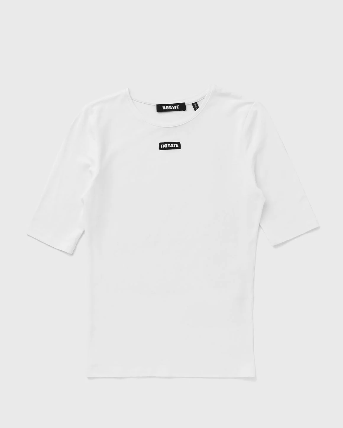 This figure-hugging ROTATE Birger Christensen T-shirt made from high-quality stretch jersey combines minimalist style with feminine elegance. A subtle logo detail on the front rounds off the design. - Round neckline - Short sleeves - Slim fit This item is partly made of certified, recycled and sustainable materials, reducing the global amount of waste and conserving primary raw materials. Discover a wide range of sustainable items now at BSTN! Article Number: 114787400 Gender: Women Color: BRIGHT WHITE Material: 48% Cotton, 48% Modal, 4% Spandex/elastane