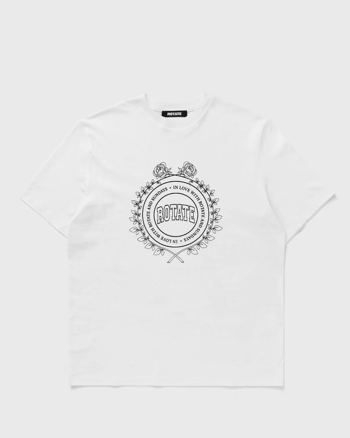 The Thin Jersey T-shirt by ROTATE Birger Christensen is a stylish statement piece that combines classic T-shirt charm with modern flair. Made from 100% GOTS-certified organic cotton, it offers both comfort and sustainability. The loose cut ensures a relaxed fit, while the eye-catching ROTATE crest with floral details and mantra adds a modern accent. - Loose fit - Round neckline - Short sleeves This item is partly made of certified, recycled and sustainable materials, reducing the global amount of waste and conserving primary raw materials. Discover a wide range of sustainable items now at BSTN! Article Number: 114393400 Gender: Women Color: BRIGHT WHITE Material: 100% Cotton