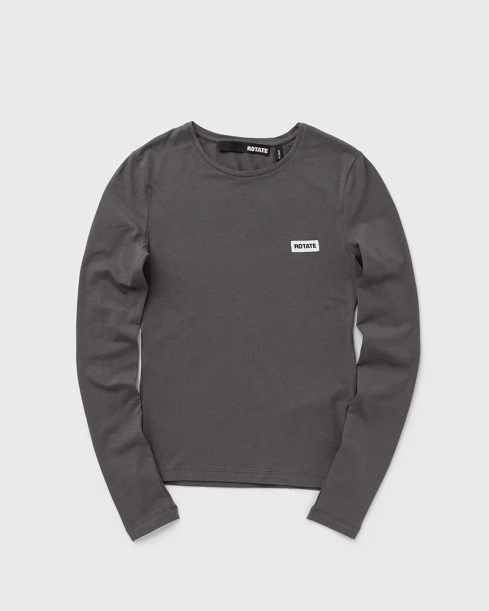 The long-sleeved T-shirt by ROTATE Birger Christensen has a simple design with a round neckline and long sleeves. A small logo patch adorns the left side of the chest, while the soft cotton-modal blend offers a comfortable fit with added stretch. - Round neckline - Long sleeves - Logo patch Article number: 1140961205 Gender: women Color: GRAY PINSTRIPE Material: 48% Cotton, 48% Modal, 4% Spandex/elastane