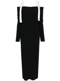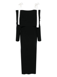 off-shoulder knitted maxi dress Highlights - Black - Ribbed knit - Off-shoulder - Satin tie-fastening straps - Folded top - Square neck - Long sleeves - Unlined - Straight hem - Full-length Imported Composition Outer: Viscose 66%, Polyamide 20%, Polyester 14% Lining: Polyester 100%