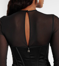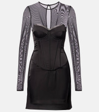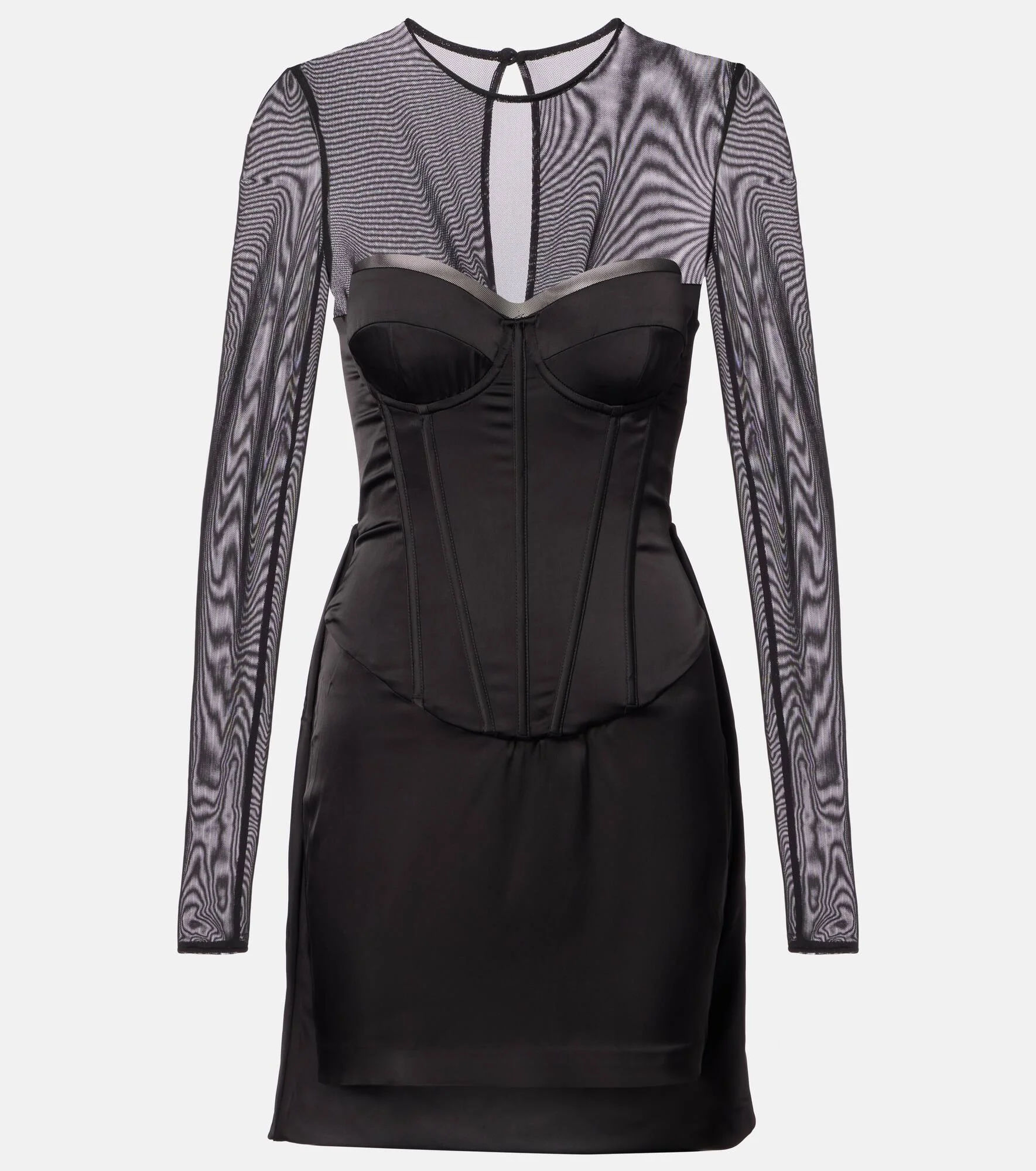 Fill the gaps in your going-out wardrobe with unique and glamorous styles from Rotate. This mini-length corset dress is crafted from satin to a sculpted silhouette, complemented by mesh trimming on the top. Product Details - Material: 95% polyester, 5% elastane - Care instructions: hand wash - Made in China - Designer color name: Black - Item color: black - Material II: 60% polyester (recycled), 40% polyester - Lining: 95% polyester, 5% elastane - Hardware color: silver - Underwired cups - Boning - Closure: buttoned back, concealed zipped back - Item number: P01113751 Size & Fit - True to size - Internal corset with underwire support - Fitted - Non-stretchy fabric - Padded top - The model seen in the picture is 178cm-5'10" and wearing a size DE 34