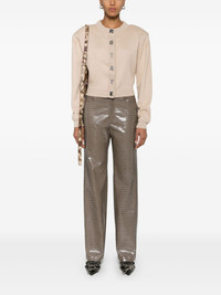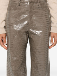 mid-rise straight-leg trousers Highlights - Taupe brown - Faux leather - Snakeskin effect - Mid-rise - Straight leg - Classic five pockets - Belt loops - Concealed front button, hook and zip fastening - Unlined Imported Composition Polyester 100% SIZE & FIT Model measurements Height 5 ft 10 in(1.78 m) Bust/Chest 33.07 in(84 cm) Hips 36.61 in(93 cm) Waist 24.8 in(63 cm) FittingInformation Designed for a straight-leg fit, these trousers allow for a close fit at the waist and an unrestricted, comfortable fit over the leg Made from a midweight fabric This piece fits true to size – take your usual size Washing instructions Dry Clean Only