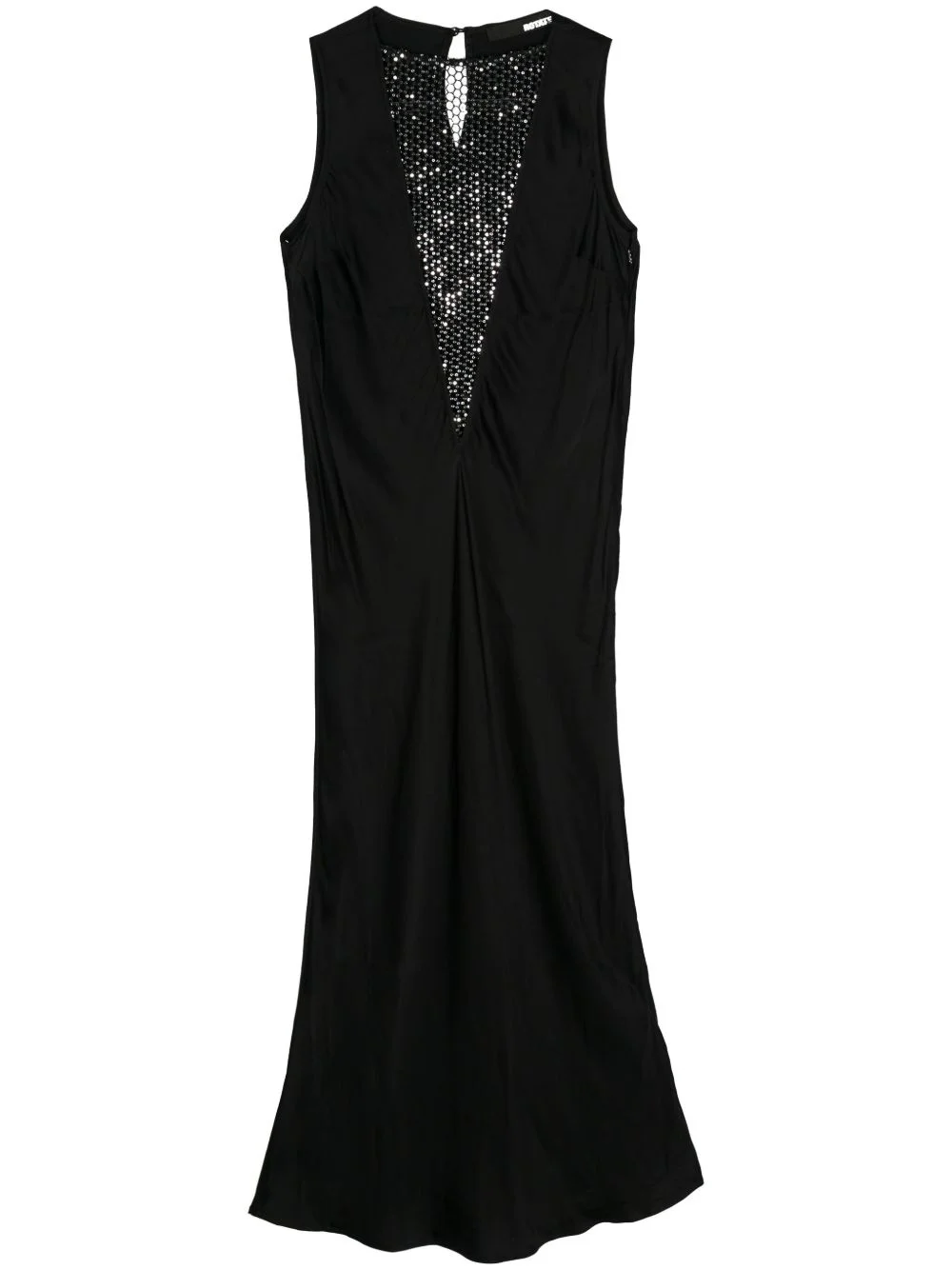 sequin-embellished sarin midi dress Highlights - Black - Satin weave - Shift style - Square neck - Semi-sheer panels - Sequin embellishment - Sleeveless - Mid-length - Flared hem - Concealed side zip fastening Imported Composition Polyester 100% SIZE & FIT Measurement HIPS 39.37 in(100 cm) LENGTH 53.93 in(137 cm) WAIST 37.79 in(96 cm)