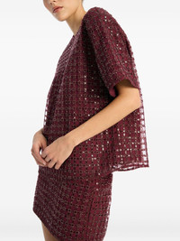 grid-pattern sequin-embellished mini skirt Highlights - Red - Sequin embellishment - Grid pattern - Mini length - Straight hem Imported Composition Lining: Polyester 97%, Elastane 3% Outer: Recycled Polyester 100% Washing instructions Hand Wash