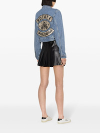 logo-patch denim jacket Highlights - Blue - Recycled cotton - Washed denim - Vertical seamed - Embroidered design patch to the rear - Logo patch to the rear - Spread collar - Front press-stud fastening - Long sleeves - Press-stud fastening cuffs - Two stud-fastening chest pockets - Two side slit pockets - Cropped - Straight hem Imported Composition Recycled Cotton 100% SIZE & FIT Model measurements Height 5 ft 10 in(1.78 m) Bust/Chest 29.92 in(76 cm) Hips 34.64 in(88 cm) Waist 23.62 in(60 cm) FittingInformation Designed for a relaxed fit, this piece allows for comfort and movement when worn Cropped in length Sturdy and hard-wearing, this denim piece offers no stretch This piece fits true to size – take your usual size Washing instructions Machine Wash
