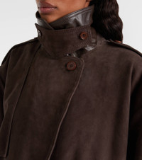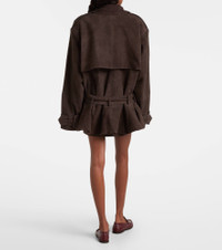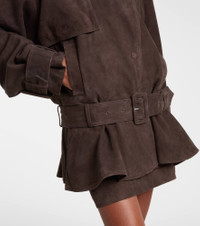 Fill the gaps in your going-out wardrobe with unique and glamorous styles from Rotate. This biker jacket is crafted from supple suede and boasts an oversized fit. Product Details - Material: 100% goat leather (suede) - Care instructions: specialist clean - Made in India - Designer color name: Chocolate Brown - Item color: brown - Lining: 100% polyester (recycled) - Contains non-textile parts of animal origin - Epaulettes - Cuff: strap, buckle and loops - Pockets: welt pockets - Detachable belt - Closure: snap-buttoned front - Item number: P01113085 Size & Fit - Fits large to size - we recommend trying one size smaller - Oversized - Non-stretchy fabric - Falls below the hip - The model seen in the picture is 178cm-5'10" and wearing a size DE 32