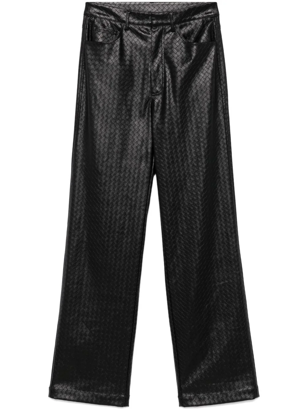 braided straight-leg trousers Highlights - Black - Recycled polyester - Braided design - Straight leg - Concealed front button, hook and zip fastening - Mid-rise - Belt loops - Classic five pockets Imported Composition Lining: Polyester 100%, Elastane 100% Outer: Recycled Polyester 100% SIZE & FIT Model measurements Height 5 ft 9 in(1.75 m) Bust/Chest 31.88 in(81 cm) Hips 34.64 in(88 cm) Waist 24.01 in(61 cm) FittingInformation Designed for a straight-leg fit, these trousers allow for a close fit at the waist and an unrestricted, comfortable fit over the leg Made from a midweight non-stretch fabric, this piece offers minimal elasticity when worn Washing instructions Dry Clean Only