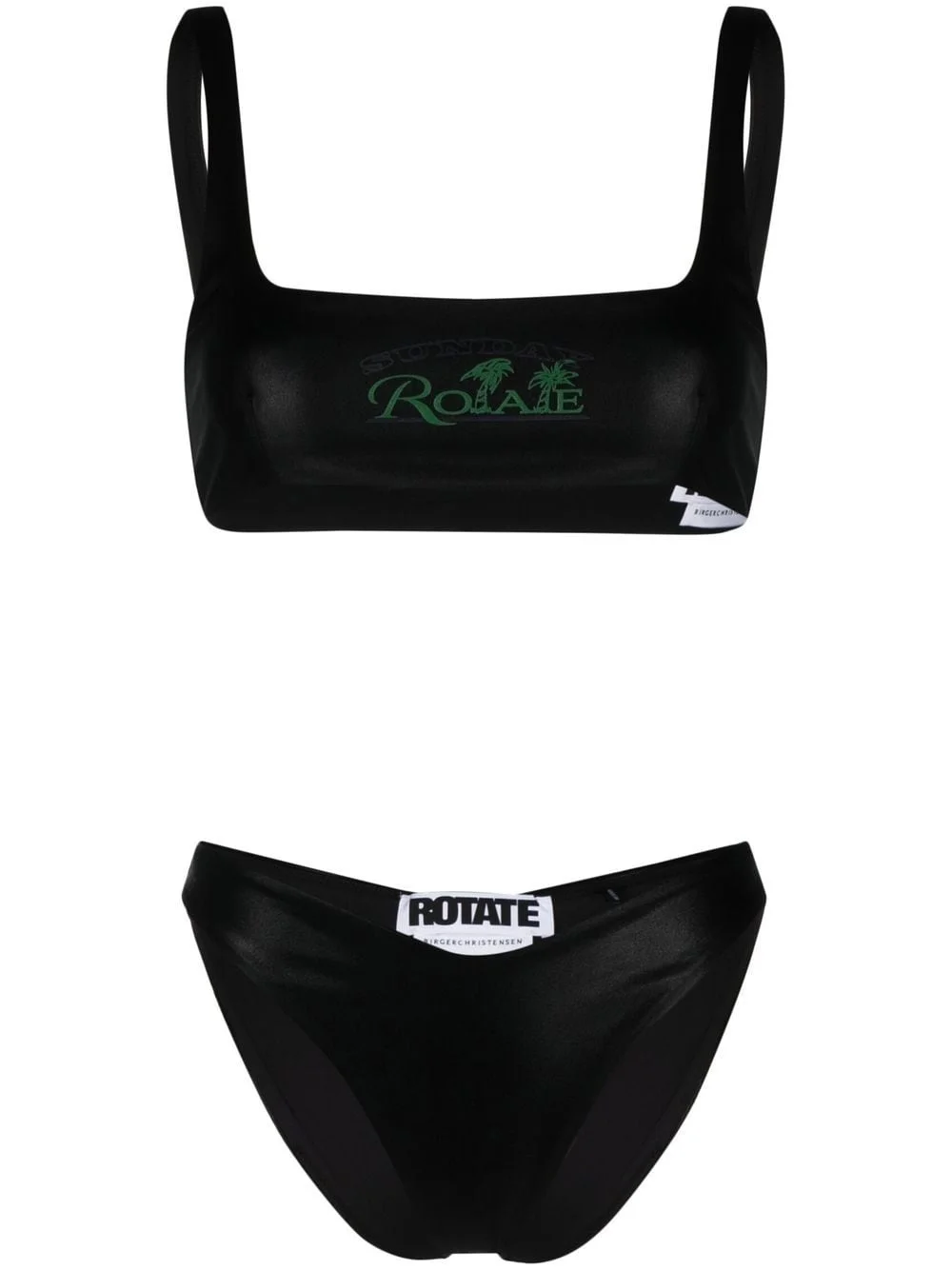 Sunday metallic two-piece bikini Highlights - Sunday metallic two-piece bikini from rotate featuring black, forest green, recycled polyamide blend, metallic sheen, logo print at the chest, square neck and stretch-design. be mindful to try on swimwear over your own garments.. . Imported Composition Outer: Recycled Polyamide 80%, Spandex/Elastane 20% Lining: Polyester 100% Washing instructions Hand Wash