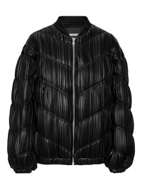 pleated bomber jacket Highlights - Black - Pleated design - Zip front fastening - Puff sleeves - Quilted effect Imported Composition Lining: Polyester 52%, Viscose 48% Outer: Polyurethane 100%, Recycled Polyester 100% Washing instructions Machine Wash