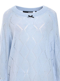 pointelle-knit sweater Highlights - Pastel blue - Ribbed cuffs and hem - Bow detailing - Long raglan sleeves Imported Composition Acrylic 72%, Wool 18%, Polyamide 10%