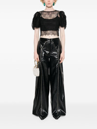 puff-sleeves lace blouse Highlights - Black - Corded lace - Draped detailing at the sleeves - Fabric-covered buttons - Round neck - Short puff sleeves with elasticated cuffs - Keyhole detail to the rear - Single rear button fastening - Raw-cut hem - Internal slip top Imported Composition Outer: Polyamide 100% Lining: Polyester 95%, Elastane 5% SIZE & FIT Model measurements Height 5 ft 9 in(1.75 m) Bust/Chest 34.64 in(88 cm) Hips 36.61 in(93 cm) Waist 26.37 in(67 cm) FittingInformation Designed for a slim fit that sits just away from the body offering a close yet comfortable fit The detachable slip sits just away from the body, offering a close yet comfortable fit Made from a lightweight fabric This piece fits true to size – take your usual size Washing instructions Hand Wash