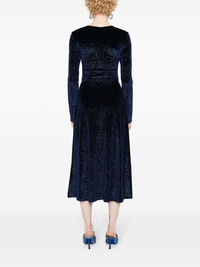 rhinestone-embellished ruched midi dress Highlights - Midnight blue - Velvet - Rhinestone embellishment - Plunging v-neck - Long sleeves - Ruched detailing - Front slit - Straight hem Imported Composition Polyester 95%, Spandex/Elastane 5% SIZE & FIT Model measurements Height 5 ft 9 in(1.75 m) Bust/Chest 34.64 in(88 cm) Hips 36.61 in(93 cm) Waist 26.37 in(67 cm) FittingInformation Designed for a close fit at the chest and waist with a loose fit at the hip Made from a midweight stretch fabric, this piece offers elasticity and flexibility when worn This piece fits true to size – take your usual size