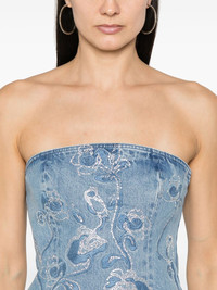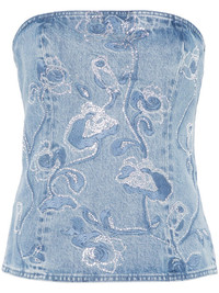 rhinestone-embellished top Highlights - Indigo blue - Organic cotton - Washed denim - Rhinestone embellishment - Concealed rear zip fastening - Floral embroidery - Strapless - Straight hem Imported Composition Organic Cotton 100% SIZE & FIT Model measurements Height 5 ft 11 in(1.8 m) Bust/Chest 33.07 in(84 cm) Hips 37.4 in(95 cm) Waist 25.19 in(64 cm) Measurement LENGTH 15.74 in(40 cm) WAIST 28.34 in(72 cm) FittingInformation Designed for a close fit throughout Sturdy and hard-wearing, this denim piece offers no stretch