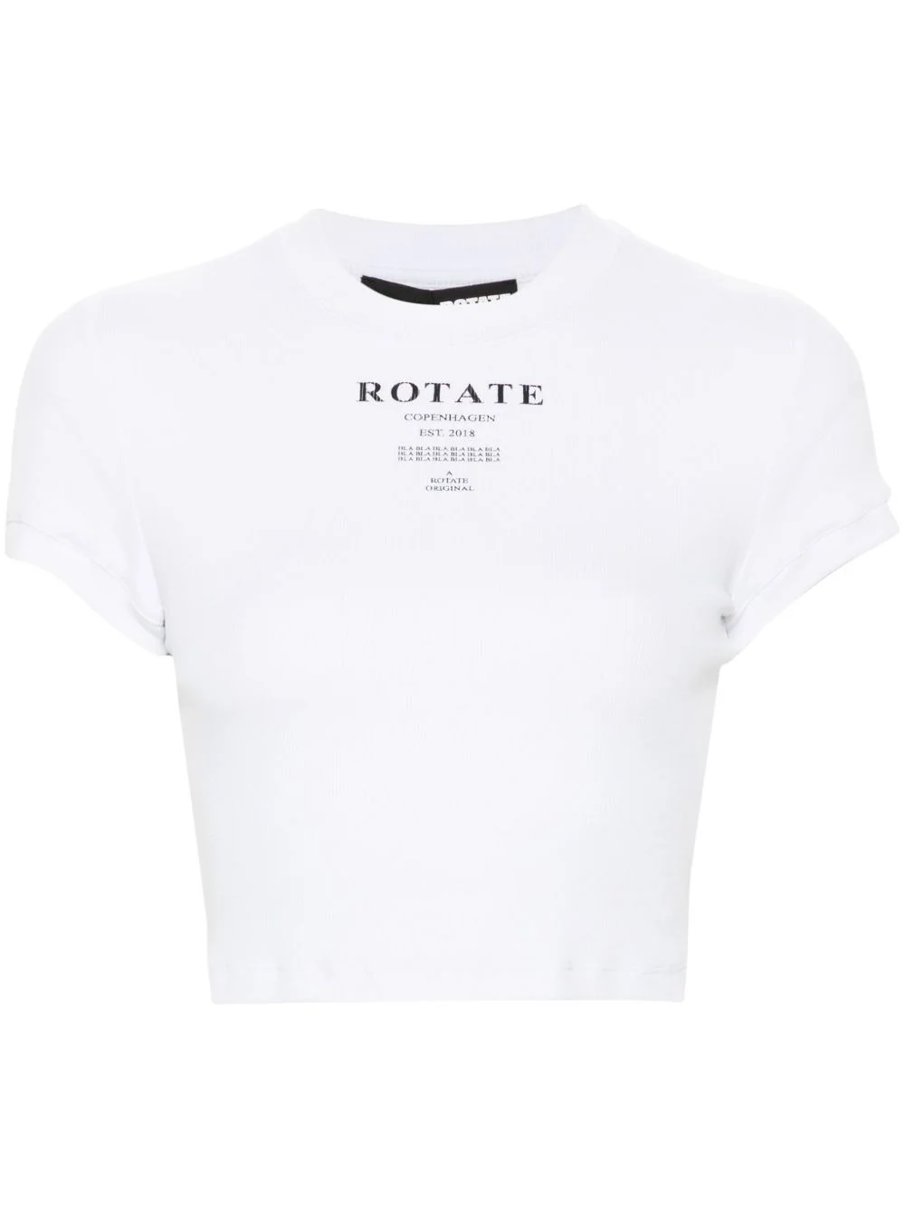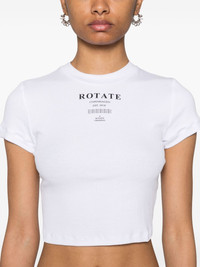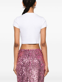 ribbed crop top Highlights - White - Organic cotton blend - Stretch-design - Fine ribbed - Logo print to the front - Round neck - Short sleeves - Cropped - Straight hem Made in Italy Composition Organic Cotton 95%, Elastane 5% SIZE & FIT Model measurements Height 5 ft 10 in(1.78 m) Bust/Chest 32.67 in(83 cm) Hips 35.43 in(90 cm) Waist 23.22 in(59 cm) FittingInformation Designed for a slim fit that sits just away from the body offering a close yet comfortable fit Made from a midweight stretch fabric, this piece offers elasticity and flexibility when worn This piece fits true to size – take your usual size Washing instructions Machine Wash