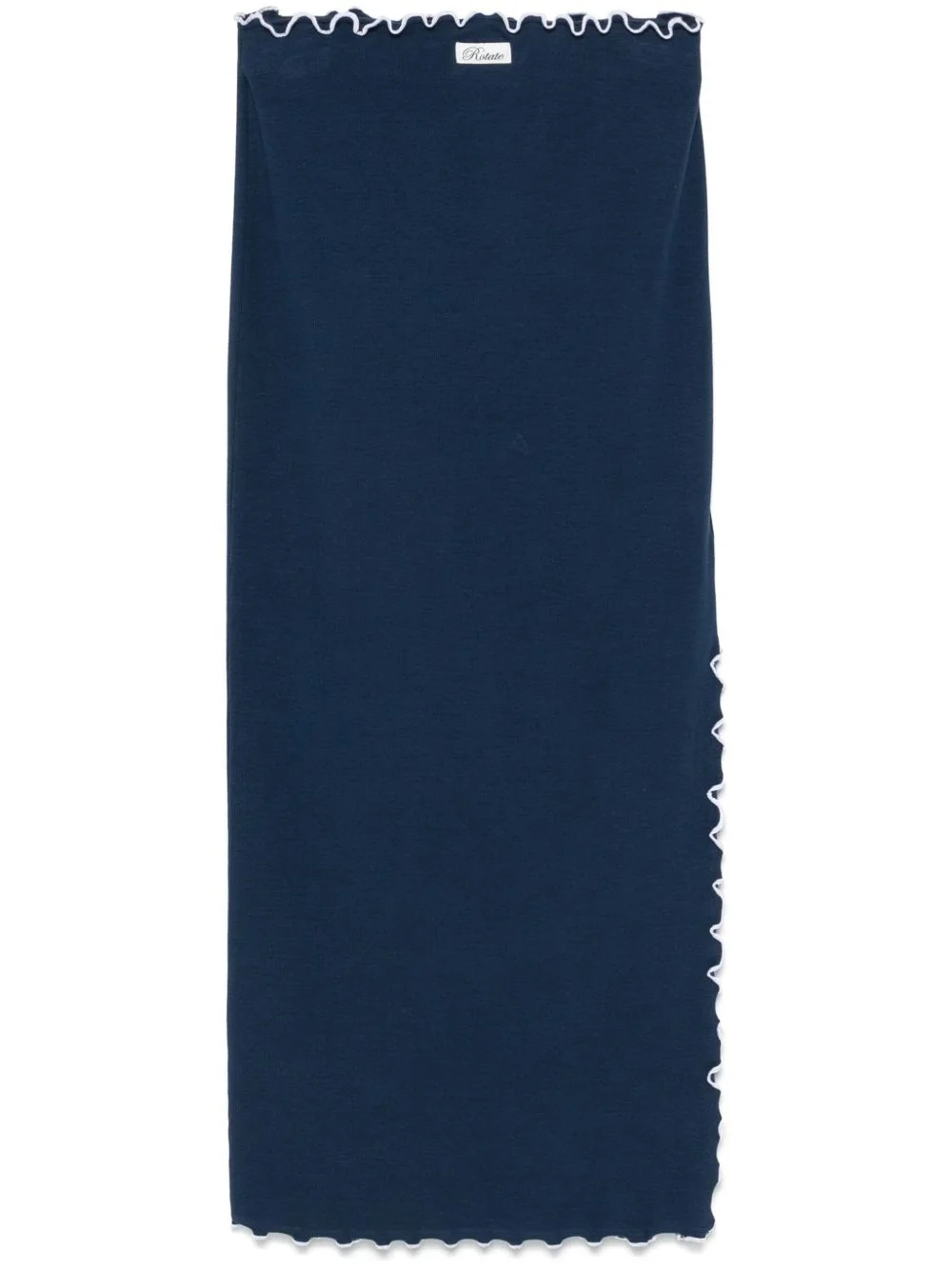 ribbed midi skirt Highlights - Navy blue - Organic cotton blend - Fine ribbed - Contrasting trim - Elasticated waistband - High waist - Logo patch to the front - Side slit - Unlined - Lettuce hem - Mid-length Imported Composition Organic Cotton 95%, Elastane 5% SIZE & FIT Model measurements Height 5 ft 9 in(1.76 m) Bust/Chest 34.25 in(87 cm) Hips 35.82 in(91 cm) Waist 23.62 in(60 cm) FittingInformation This midi-length skirt is intended to be worn high on the waist The vented hem offers movement at the rear Made with a midweight knit, this piece offers some stretch