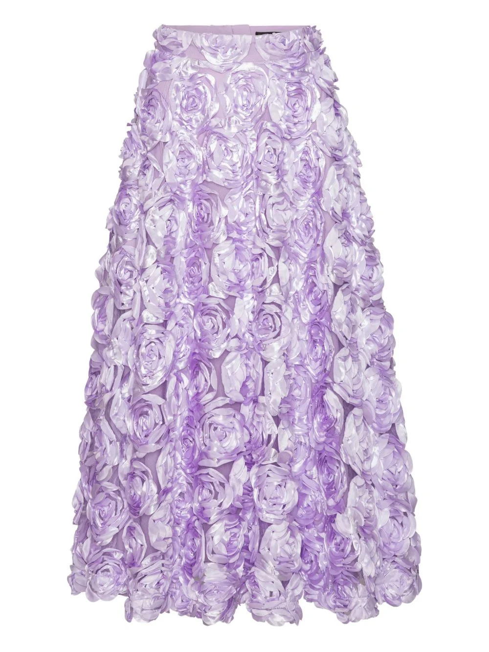 rose-embellished midi skirt Highlights - Lilac - Rose embellishment - A-line shape - Midi length - Concealed zip fastening - Layered rose petals Imported Composition Lining: Polyester 92%, Elastane 8% Outer: Recycled Polyester 100% Washing instructions Hand Wash