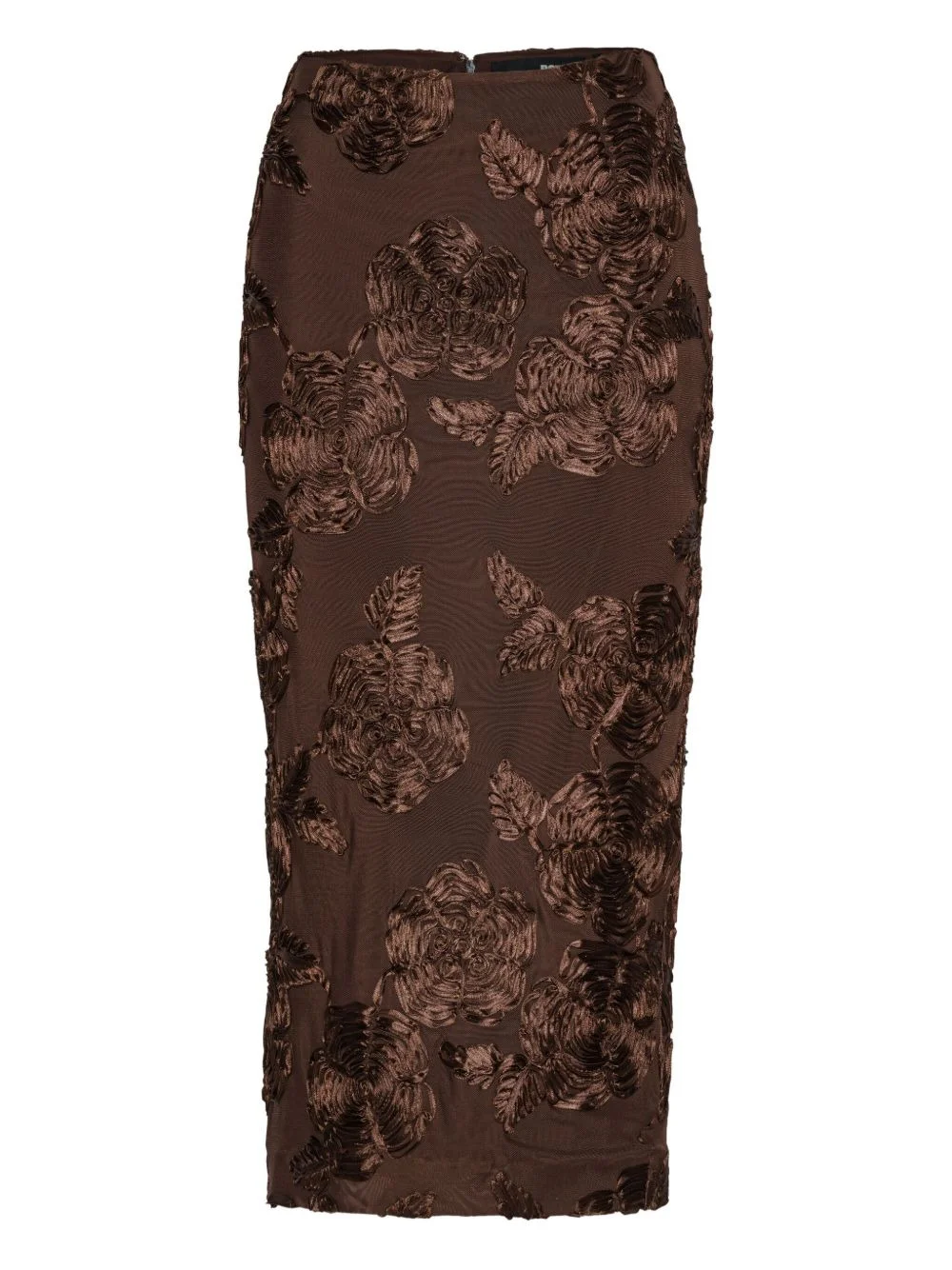 rose-embellished pencil midi skirt Highlights - Brown - Rose embellishment - Midi length - Back zip fastening Imported Composition Outer: Recycled Polyester 95%, Elastane 5% Lining: Polyester 88%, Elastane 12% Polyester 100% Washing instructions Read Manufacturer Guidelines