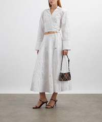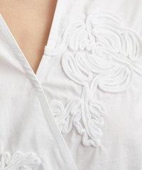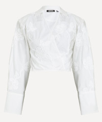 DETAILS Cotton shirt Cropped fit Wrap-over design Long sleeves Collared V-neckline Adjustable ties Tonal floral embroidery SIZE & FIT Model is 175cm/5'9"; Chest: 76cm; Waist: 58cm; Hip: 90cm and wears a size 38 COMPOSITION & CARE 100% Cotton Composition 2: 100% Polyester Dry clean