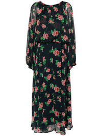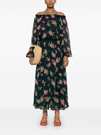 floral-print chiffon maxi dress Highlights - Midnight blue/grass green/rose pink - Recycled polyester - Chiffon - All-over rose print - Semi-sheer construction - Layered details - Ruffled detailing - Gathered detailing - Off-shoulder - Balloon sleeves with elasticated cuffs - Drawstring waist - Long length - Flared hem - Partial lining Imported Composition Lining: Polyester 95%, Spandex/Elastane 5% Outer: Recycled Polyester 100% SIZE & FIT Model measurements Height 5 ft 10 in(1.78 m) Bust/Chest 33.07 in(84 cm) Hips 36.61 in(93 cm) Waist 24.8 in(63 cm) FittingInformation Designed to be unstructured, offering a loose fit throughout The elasticated shoulders offer movement and a comfortable fit Made from a midweight fabric This piece fits true to size – take your usual size