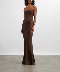 DETAILS Satin maxi dress Tight fit Fitted bodice Fluid skirt Floor-length hem Concealed zipper SIZE & FIT Model is 178cm/5'10"; Chest: 77cm; Waist: 65cm; Hip: 92cm and wears a size 8 COMPOSITION & CARE 100% Polyester Lining: 80% Polyamide; 20% Elastane Dry clean